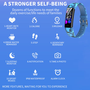• MONITEUR DE FRÉQUENCE CARDIAQUE ET DE SOMMEIL: Le tracker de fitness peut automatiquement surveiller la fréquence cardiaque quotidienne en temps réel et suivre votre sommeil la nuit. Obtenir les données sur vos tendances de sommeil via l'application pourrait vous aider à ajuster vos habitudes et vous aider à vivre en meilleure santé.  La LSKIDS2,  fournit avec précision les données de sommeil des enfants (sommeil profond, sommeil léger et heure de réveil) pour aider vos enfants à développer un horaire plus sain. Toutes les données de santé peuvent être téléchargées gratuitement sur l'application  "H-band".