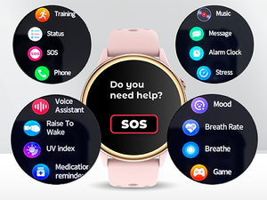 La smartwatch femme peut également surveiller votre humeur et votre stress 24 heures sur 24. Envie de vous détendre ou d'améliorer votre concentration? Commencez simplement des exercices de respiration pour vous aider à soulager votre anxiété, à détendre votre corps Autres fonctions de santé : rappels de médicaments, rappels de sédentarité, rapports hebdomadaires de santé, etc. Pour vous aider à développer de bonnes habitudes de vie