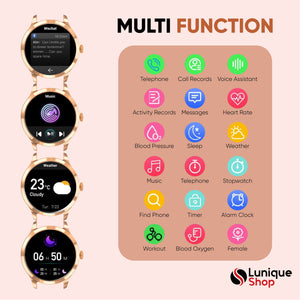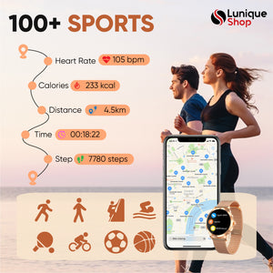 🏃♀️La montre femme Luniqueshop vous permet de gérer votre activité physique si nécessaire grâce aux 100 sports proposés. Avec son podomètre intégré, la Smartwatch vous encouragera à atteindre vos objectifs de pas quotidiens. De plus, elle vous aidera à mesurer le nombre de calories brûlées lors de vos séances de sport pour un suivi précis de votre activité physique.Eco-Participation : 0,10€