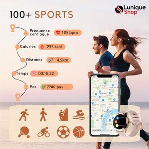🏃♀️La montre femme Luniqueshop vous permet de gérer votre activité physique si nécessaire grâce aux 100 sports proposés. Avec son podomètre intégré, la Smartwatch vous encouragera à atteindre vos objectifs de pas quotidiens. De plus, elle vous aidera à mesurer le nombre de calories brûlées lors de vos séances de sport pour un suivi précis de votre activité physique.Eco-Participation : 0,10€